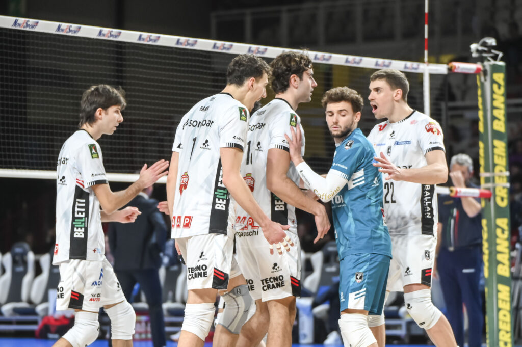 Quinto set. Il parziale decisivo si apre all’insegna dell’equilibrio (3-3, pipe di Orioli; 4-3, ace di capitan Polo), poi la Sonepar accelera: la diagonale di Masulovic vale il 6-3 e consente ai bianconeri di doppiare Cisterna. Padova mantiene il controllo anche nelle fasi successive (9-5, diagonale di Gardini), con la formazione laziale che fatica a ricucire. I bianconeri continuano a spingere e ampliano progressivamente il margine (10-6), senza più concedere spazio agli avversari. Il quinto set si chiude sul 15-9 in favore di Padova.