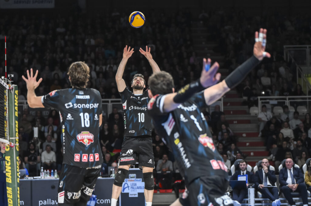 Secondo set. Sonepar Padova parte con decisione nel secondo parziale, trovando subito buone soluzioni a muro: sul 5-3 è Truocchio a firmare il punto, mentre il mani out di Orioli consente ai bianconeri di allungare sul 6-3. Verona prova a rimanere in scia, ma i padroni di casa continuano a dettare il ritmo: Masulovic sigla l’11-7 a muro e, subito dopo, Gardini trova il mani out del 12-7 che consolida il margine. La squadra bianconera resta al comando, mentre gli scaligeri tentano di ricucire. Capitan Polo mette a terra una murata pesante per il 17-13, poi si ripete in veloce per il 19-15. Nel finale Verona si rifà sotto grazie alla serie al servizio di Keita, che realizza anche un ace per il 21-20, prima dell’aggancio sul 21-21. La volata conclusiva è nuovamente punto a punto. Padova si costruisce il 24-22 con il muro di Todorovic, ma Verona annulla tutto con il muro di Cortesia (24-24). I bianconeri, però, reagiscono con lucidità nei momenti decisivi e chiudono il parziale 26-24, riportando la sfida in perfetta parità.