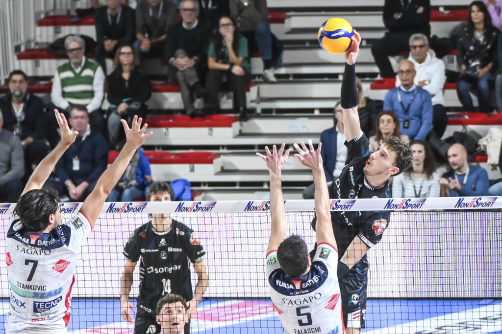 La Sonepar conquista la seconda vittoria casalinga superando 3-1 la Yuasa Battery Grottazzolina al termine di una sfida intensa e combattuta, valida per la 4^ giornata di SuperLega. I bianconeri hanno mostrato solidità nei momenti decisivi e una buona gestione delle fasi più delicate del match. La formazione di coach Jacopo Cuttini ha imposto il proprio ritmo nei primi due parziali, ha accusato un passaggio a vuoto nel terzo set ma ha poi ritrovato lucidità e compattezza nel quarto, chiudendo la gara a proprio vantaggio. Per la sfida con la compagine marchigiana, i bianconeri sono scesi in campo con Truocchio, Todorovic, Orioli, Polo, Masulovic, Gardini, Diez (L). Mattia Orioli, MVP del match, il miglior realizzatore per i padroni di casa, totalizzando 21 punti personali (62% attacco), mentre per Grottazzolina si è distinto Amir Moham Golzadeh, che ha realizzato 23 punti (49% attacco).